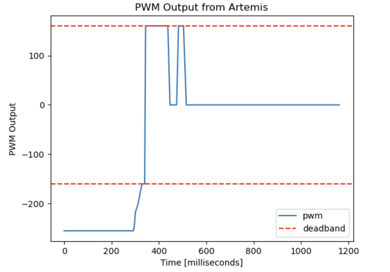 I created a SET_ANG_PID_PARAMS command that set the values of kp, kd, and ki, even if the control loop was already running, allowing for fast experimentation. To start the orientation control loop, I sent the command START_ANGULAR_PID, and sending SEND_ANGULAR_PID_DATA triggered the transfer of any data collected back to my laptop for analysis.
