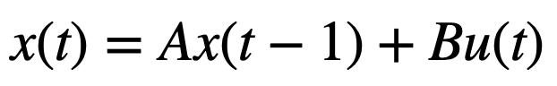 Here, the matrix A describes how the system evolves with no input and the matrix B represents how input into the system changes the state.