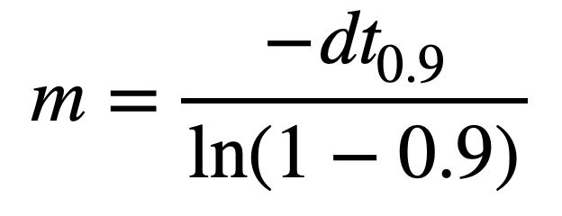 Here, t_0.9 is the 90% decay time, which is indicated in the graph of the exponential fit to be 2.43995 [s]. Therefore, m = 0.000183653 [N*s^2/mm].