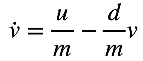 This allows us to solve for the acceleration and velocity in terms of u, m, and d: